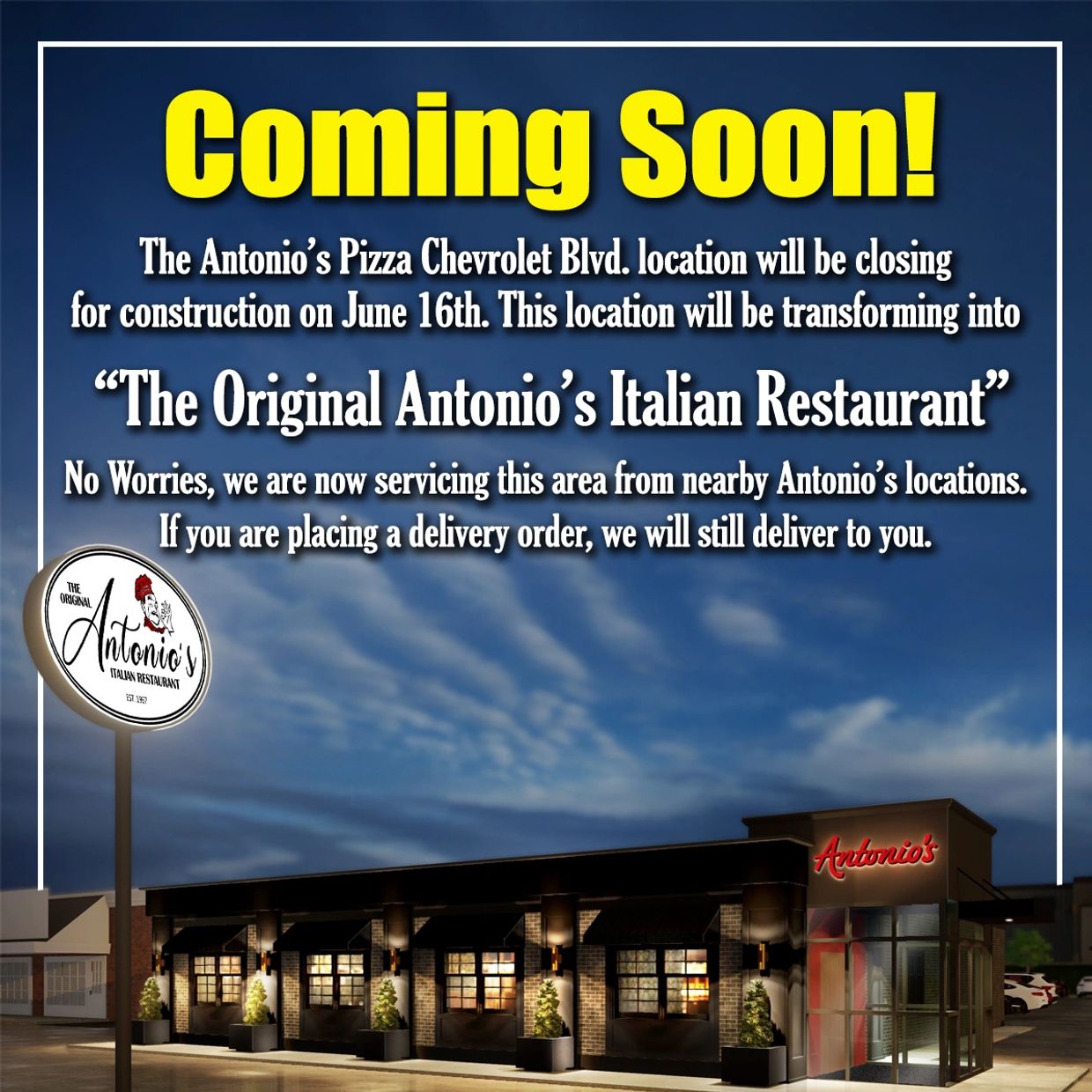 We’re excited to share some big news — the Antonio’s on Chevrolet Blvd. is transforming into The Original Antonio’s Italian Restaurant!